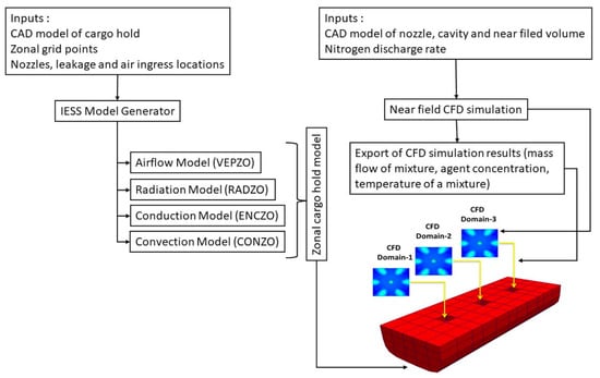 Schematic zonal cargo hold model coupled with two CFD domains.