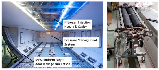 Today, a large quantity of halon from bottles is released to perform the knockdown within two minutes, and then the fire suppressive environment is maintained within the cargo hold by constant metering of halon. However, due to high Ozone Depletion Potential (ODP) of halon, the aerospace industry is looking for halon-free systems. The use of nitrogen as a suppression agent, diluting the cargo hold oxygen concentration below the flammability point, is one such alternative under research within the CleanSky2 “Environmentally Friendly Fire Protection” (EFFP) project. Within this project, a simulation toolchain is developed that predicts the agent concentration distribution within the cargo hold, and a physical full-scale demonstration is implemented in the Flight Test Facility, a low-pressure chamber hosting the front section of a former in-service A310 including the underfloor area and forward cargo hold.