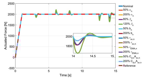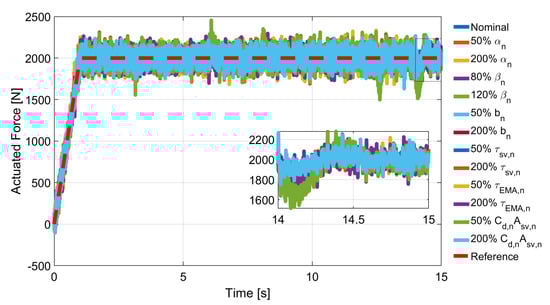 In the plant design phase, a classical control approach has been adopted. Indeed, the force control algorithm is based on a PID, whose gains have been optimized to ensure robust performance in the presence of parametric uncertainties, and a closed loop response faster (∼0.01 s response time) than the EMA position controller (∼0.1 s response time). Results proved that the proposed solution works well in the presence of uncertainties and noise and hard nonlinearities neglected in the design of the control law such as hysteresis and dead zones. In particular, both the dynamic and static precision, is quite insensitive to the uncertainties and to the different scenarios considered to include possible tests on different kinds of aircraft.