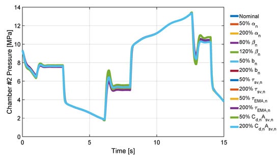 In fact, both the hydraulic and EMA actuators are mechanically linked to the movable surface and each controller becomes a source of disturbance for the other. Looking at force control, the piston speed induced by position control, causes a variation of the volume of the two cylinder chambers, namely . Therefore, since the pressure rate in each chamber depends on the volume derivative according to (12), if this effect is not properly compensated by dumping the necessary amount of fluid from one chamber to the other, strong overshoots of the controlled force occurs.