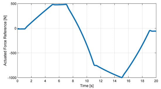 Several modeling approaches can be found in the literature. In [1], modeling is based on Newton equation for UUT piston and for load actuator movement. In [13,14], the model is obtained directly in the Laplace domain for the load actuator. In [15,16], the mathematical model is based on Newton equation for the electro-hydraulic piston movements, and a mass balance is used for servo-valve modeling, controlled with input flow rate. In [17,18], the Newton equation is used for piston displacement: Coulomb friction model is adopted taking into account some model uncertainties. Friction, that is a relevant aspect in this field, is also modeled in [19,20,21]. Relevant works can be found in [22,23,24,25,26].