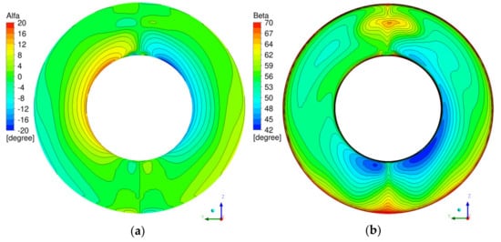 In the same manner, the absolute whirl angle is defined in Equation (2) by: