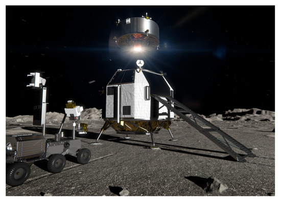 - ESA. Lunar Ascent Element, Hunamn Enabled Robotic Architecture and Capabilities for Lunar Exploration and Science, Heracles, Framework; ESA-HSO-K-TN-0011; ESA: Paris, France, 2017. [Google Scholar]