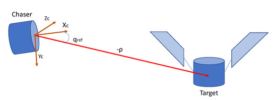 where is the relative distance between chaser and target CoM, and are the docking port position of chaser and target, respectively. The equation above can be seen as an output of the system.