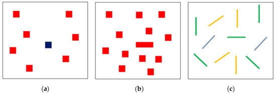 - Wolfe, J.M.; Utochkin, I.S. What is a preattentive feature? Curr. Opin. Psychol. 2019, 29, 19–26. [Google Scholar] [CrossRef] [PubMed]