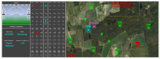 - Friedrich, M.; Lieb, J. A Novel Human Machine Interface to Support Supervision and Guidance of Multiple Highly Automated Unmanned Aircraft. In Proceedings of the 2019 IEEE/AIAA 38th Digital Avionics Systems Conference (DASC), San Diego, CA, USA, 8–12 September 2019. [Google Scholar] [CrossRef]