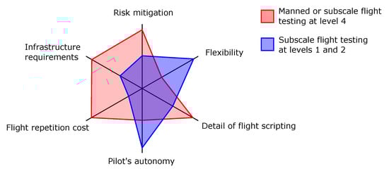 Subscale flight testing (SFT) is defined here as an experimental method in which a downscaled, unmanned aerial vehicle is free-flown in the open atmosphere to obtain qualitative or quantitative information about a larger vehicle, a more complex system or a technology of interest.