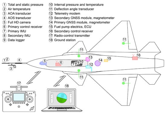 - Lu, H.H.; Harris, J.; Goecks, V.G.; Bowden, E.; Valasek, J. Flight test instrumentation system for small UAS system identification. In Proceedings of the 2017 International Conference on Unmanned Aircraft Systems, ICUAS 2017, Miami, FL USA, 13–16 June 2017; pp. 1696–1705. [Google Scholar] [CrossRef]