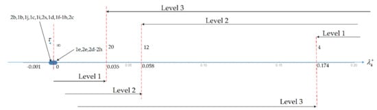 Equating the coefficients of equal powers of λ in (30) leads to a system of 8 equations, which are linear in the 4 pairs of variables with g = 1, …, 4. These variables are equivalent to , Equation (14c) in the form (31):