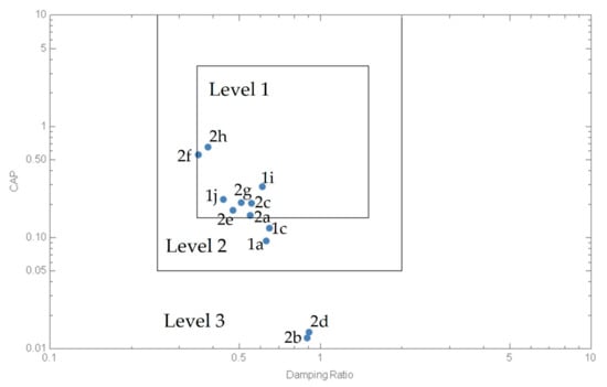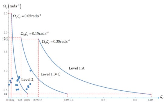 The data in Table 9 allows an assessment of the longitudinal and lateral HQs. The latter are considered for the standard flight phase categories A, B, C and the first three levels of the Cooper-Harper [25] rating scale. Table 10 lists the main longitudinal and lateral HQs criteria [24]. Using the data in Table 9, follows the HQs levels are listed in Table 11 for all eighteen cases illustrated in Figure 1, Figure 2, Figure 3, Figure 4, Figure 5, Figure 6, Figure 7.