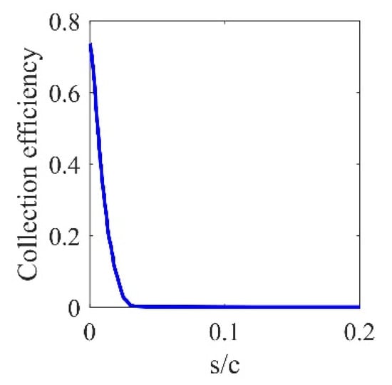 Collection efficiency of the upper part of the NACA0012 airfoil as used on the flat plate surface [].