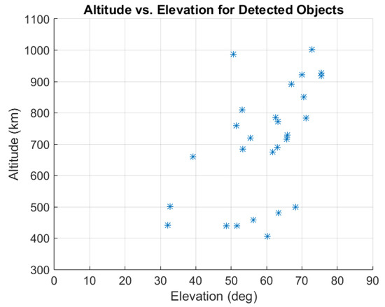 Scatter plot of altitude vs. elevation for the detected objects.