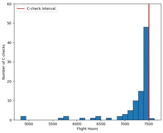 There are a few checks with lower utilization due to limitations in hangar maintenance at some periods. For instance, there are two C-checks with less than 5000 FH, which had their due date during the Christmas period. The C-check constraints during this period and the Summer season lead the algorithm to schedule them several months before their due date.