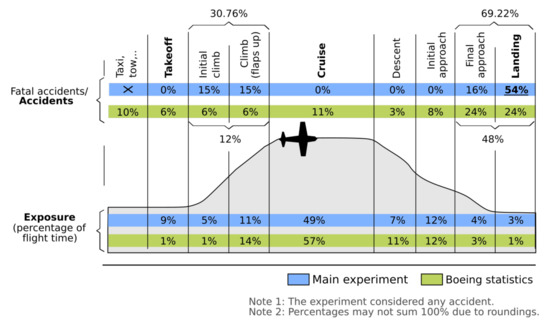 Distribution of fatal accidents by civil aviation (Boeing report) and general accidents (proposed experiment) (adapted from [2]).