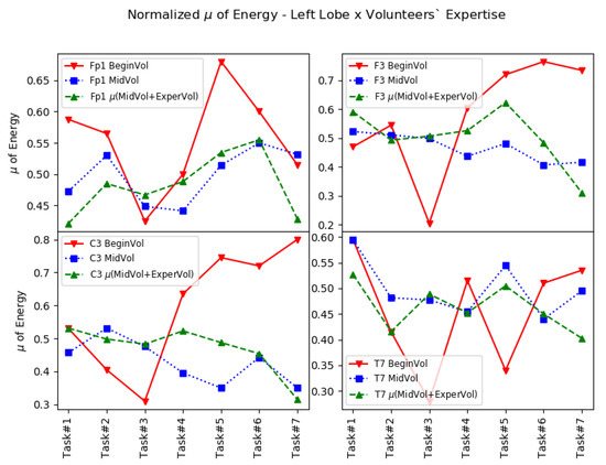 Figure A1, Figure A2, Figure A3, Figure A4, Figure A5, Figure A6 and Figure A7 show the brain magnitudes of several lobes along each proposed flight tasks and volunteers’ expertise.