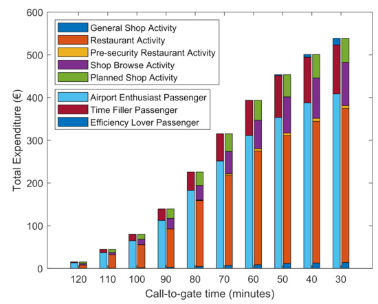- Torres, E.; Domínguez, J.; Valdes, L.; Aza, R. Passenger waiting time in an airport and expenditure carried out in the commercial area. J. Air Transp. Manag. 2005, 11, 363–367. [Google Scholar] [CrossRef]