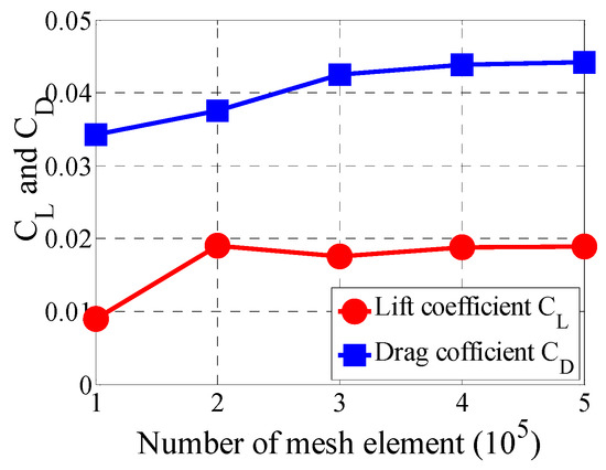 The grid independence test was carried out for multiple sets of grids of 0.1 to 0.5 million elements. Figure 5 shows estimated aerodynamic forces for the hybrid airship for various grids at 0° angle of attack. Based on the grid independence study, the computational domain was discretized with approximately 0.4 million hybrid tetra/hexahedral elements.