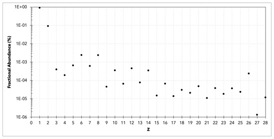 The relative abundance of each incident GCR ion simulated in this work obtained from [17] for solar modulation of 400 MV.