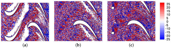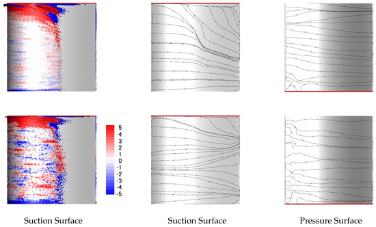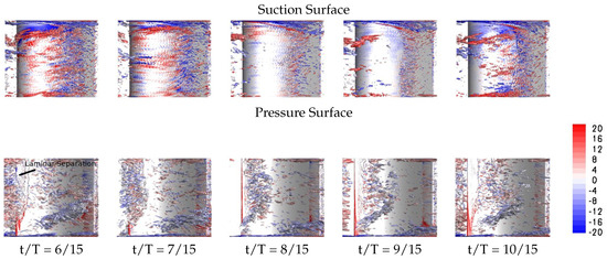 36] for a Reynolds number of 25,000, laminar separation from the suction surface was almost completely suppressed. Experiments by Volino [