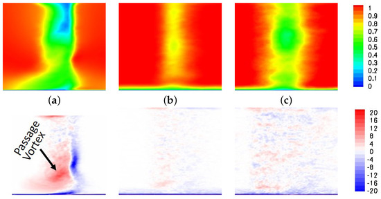 14]. They found that as the endwall boundary layer thickness increases, the PV moves farther away from the suction surface and the total pressure losses increase near the endwall but remain unchanged near mid-span.
