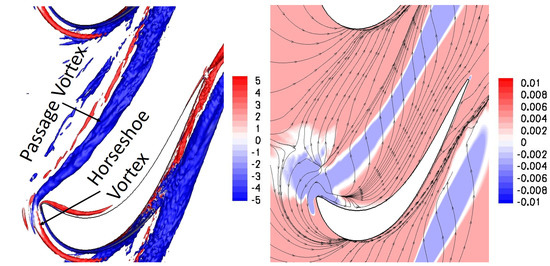 40] employed LES for investigating the effect of the endwall boundary layer state (laminar or turbulent) and upstream wakes (with secondary flow structures). With turbulent endwall boundary layer and passing wakes, the total pressure losses were increased substantially over a reference case with laminar endwall boundary layer and no wakes. More recently, Romero and Gross [