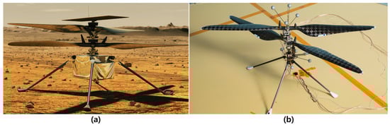 - Illustration of Mars Helicopter. Available online: https://www.nasa.gov/aeroresearch/nasa-aeronautics-experts-help-prepare-ingenuity-to-fly-on-mars (accessed on 24 June 2021).