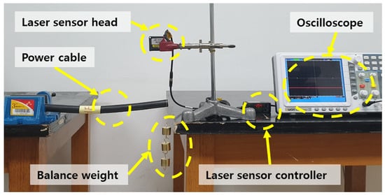 In order to proceed the bending tests, four specimens for each type of power wire of HF-CO, TFR-CV and TFR-8 were prepared, and the detailed specifications of each specimen are shown in Table 4. After clamping a power cable specimen as a cantilever, a laser sensor was located to measure the free end displacement. Balance weights were used to apply load at the free end of the specimen. The free end displacement for each applied load was measured after it converged to a certain value.