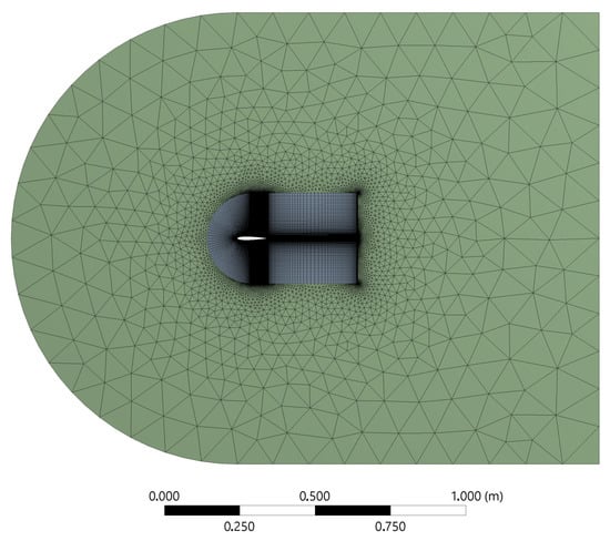 The present methodology was previously described in detail in [] and only the main points will be mentioned here. Mesh and timestep independence studies were conducted for a , , and and during the simulation, due to the turbulence model requirements, the was maintained under 5.