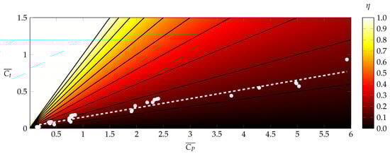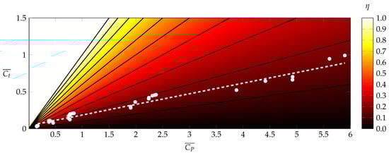 respectively. The propulsive efficiency is then defined by the ratio between the mean thrust and mean power coefficients, as expressed in Equation (3).