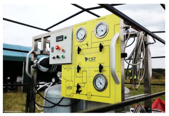 - Rarata, G.; Rokicka, K.; Surmacz, P. Hydrogen Peroxide as a High Energy Compound Optimal for Propulsive Applications. Cent. Eur. J. Energ. Mater. 2016, 13, 778–790. [Google Scholar] [CrossRef]