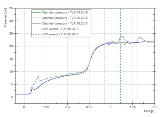 Efficiencies exceeding 90% have been demonstrated during full-scale motor firings, in comparison to the first tests of 100 Newton motors, when 80% efficiency was obtained [99]. Flights allowed a velocity equivalent to Mach 2.05 and 23 km of altitude to be reached [109], while the AMBER 2K will exceed Mach 5 and 100 km of altitude. Altitudes reached to date were limited due to the small volume of oxidizer loading, test site size and the potential range of the fully loaded vehicle. Numerous tests allowed technology optimization. Good repeatability was demonstrated between consecutive subscale firings and also regarding the flight motor, including comparison of data from ground and flight campaigns. This considers thrust levels (1% of relative difference in thrust during hybrid mode operation when recalculated to sea-level conditions), as well as the delay between HTP flow initiation and hybrid-mode motor operation, which was below 1 s. This delay is important regarding the vehicle’s launch sequence and the loss of total impulse due to propulsion system monopropellant operation before hybrid mode. The motor chamber pressure build-up plots from all three AMBER rocket flights, provided in Figure 12, show that the differences in hybrid mode initiation in terms of pressure dynamics are not visible to the naked eye (the slight difference in monopropellant mode between different motor generations is not important since the rocket is not released by the Launch Management System until the predefined thrust level is reached). Lessons learned include the following points: