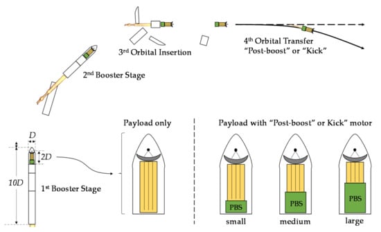 3.1. Ideal Post-Boost Stage and Kick Motor Results