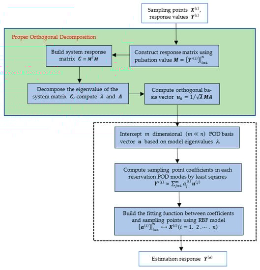 Fifthly, the POD basis vector is obtained in the fourth step. From the approximate relationship , the coefficients of the POD basis vector under all sample points can be calculated by the least square method. Due to the relationship between sample points and coefficients , RBF is used to establish their approximate fitting relationship [33,34,35,36,37,38].