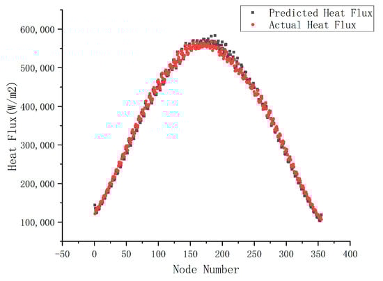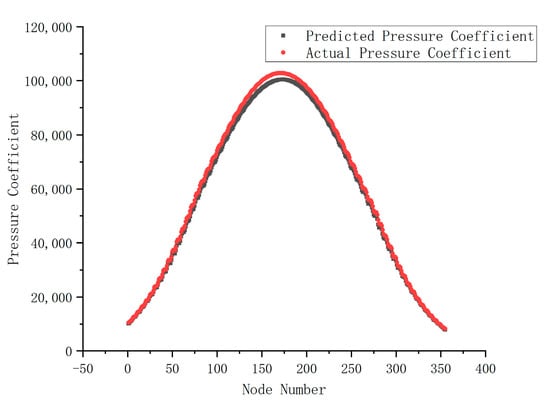 Heat flux and pressure coefficient of the wall of the fluid domain are usually of interest to researchers. By comparing the actual value with predicted value, the accuracy of the prediction method could be judged. The wall consists of 355 nodes, the actual pressure coefficient and predicted pressure coefficient of these nodes are shown in Figure 5. The actual heat flux and predicted heat flux of these nodes are shown in Figure 6. It could be seen that the predicted value is almost consistent with the actual value regardless of the pressure coefficient or the heat flux.