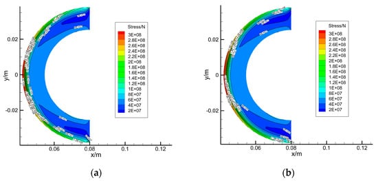 The contour of structural stress: (a) actual stress; (b) predicted stress.