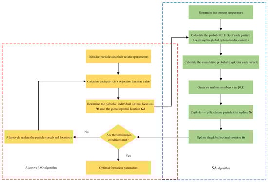 4.2. Formation Optimization Strategy Based on the Adaptive SA-PSO Algorithm