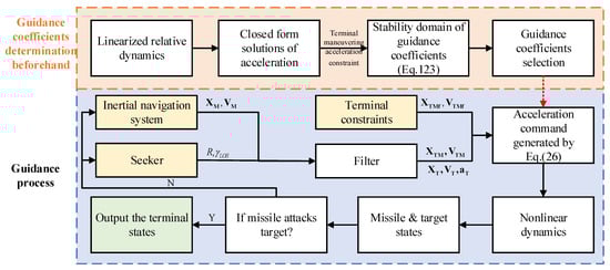 In some engagement scenarios, in order to penetrate the weak part of an armored maneuvering target, or to keep the target in the field of view (FOV) of the seeker, the missile is required to attack the target from a specified orientation. Additionally, according to the requirement of penetrating the armored target [1] and minimizing the influence of the parasitic effect [2], the angle of attack (AOA) of the missile at the moment of impact should be near zero. As a small AOA generates a small maneuvering acceleration, the AOA constraint can be converted into that on terminal maneuvering acceleration. Due to the aerodynamic constraints, the allowable maneuverability of intercepting vehicle is limited, a sufficiently small terminal maneuvering acceleration at the moment of impact helps to remain control margin to cope with sudden disturbances [3]. This is of great benefit in some typical scenarios, such as attacking a target with decoys [4,5]. Therefore, this paper aims at designing a highly constrained guidance against a maneuvering target while considering both the terminal impact angle and acceleration limitations.