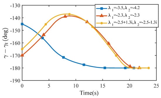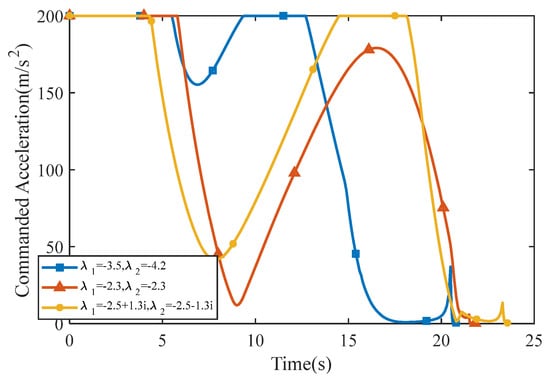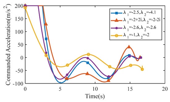 In this case, and are complex conjugates, and the closed-form solution of the acceleration command can be obtained as: