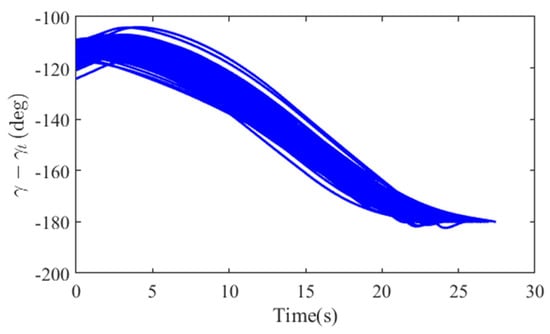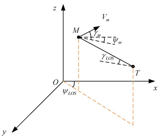 As shown in Figure 28, for the horizontal plane, denotes the heading angle, which is the angle between the velocity vector and the vertical plane; denotes the azimuth angle of the line of sight. For the vertical plane, denotes the flight-path angle, which is the angle between the velocity vector and the horizontal plane; denotes the pitch angle of the line of sight.