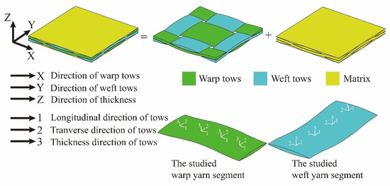 RUC of the plain-woven fabric composites and the studied warp and weft yarn segments.