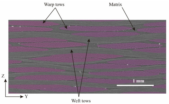 A typical Y–Z slice image of the T300/Cycom970 plain-woven fabric composite.