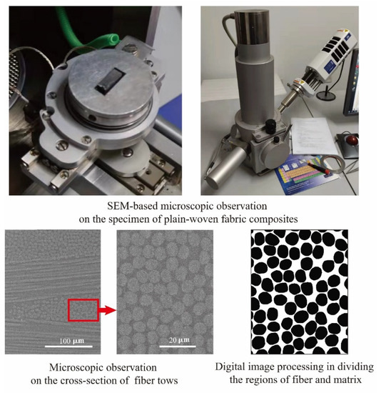 Microscopic observation of the specimen of plain-woven fabric composites and digital image processing for the SEM observation result.