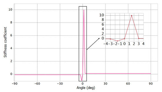 The driving torque of a single TSH is described as the function of the stiffness, damping, rotation angle, angular velocity and one angle-stiffness spline in this paper. According to the experimental test, the stiffness of single tape strip can be implemented by the Akima spline function [33], which is a continuously differentiable interpolation built from piecewise third-order polynomials. Only data from the neighboring points are used to determine the coefficients of the polynomial. The driving torque of TSHs is described in Equation (1).