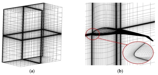 Computational mesh around the baseline airfoil at section A. (a) Computational domain. (b) Near-wall grids distribution.