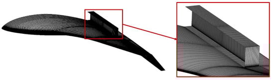Figure 6 displays the computational mesh around the baseline airfoil at section A. The O-topology grids with 361 cells in the stream-wise direction and 150 cells in the normal-to-wall direction is used. The boundary layer thickness was applied based on the Reynolds number of the flow, and the height of the first layer is set to be 0.001 m so that the non-dimensional y-plus falls in the range less than 2.0.