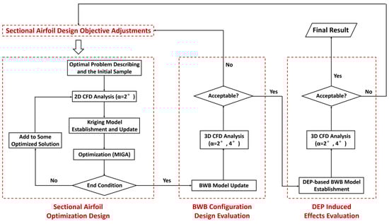 On the other hand, for both BWB configuration design evaluation and DEP induced effects evaluation, meeting the cruising targets at the same time, including the cruise lift, cruise pitching moment, static stability margin and the maximum lift–drag ratio, is the criterion for whether the optimization process continues or not.