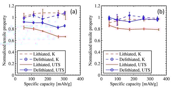 - Carlstedt, D.; Marklund, E.; Asp, L.E. Effects of State of Charge on Elastic Properties of 3D Structural Battery Composites. Compos. Sci. Technol. 2019, 169, 26–33. [Google Scholar] [CrossRef] [Green Version]