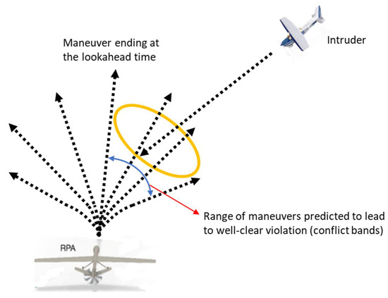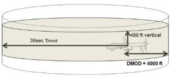 - Upchurch, J.M.; Munoz, C.A.; Narkawicz, A.J.; Chamberlain, J.P.; Consiglio, M.C. Analysis of Well-Clear Boundary Models for the Integration of UAS in the NAS; NASA Technical Memorandum: Hampton, VA, USA, 2014.