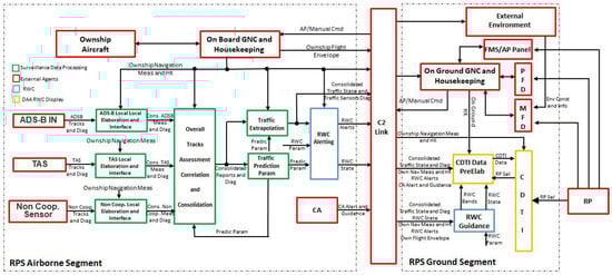 - TAS: implements the active traffic sensor outputting the detected surrounding traffic in a proper format. Such a sensor allows the RPAS to know whether an intruder is ACAS equipped or not, supporting the interoperability in case of resolution advisories (RAs).