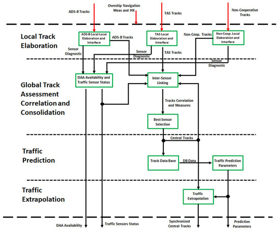 - A suite of both cooperative and non-cooperative sensors. These sensors supply air traffic measurements in terms of intruders’ position and velocity, with their respective accuracies, and information about the intruders’ status. Specifically, a Mode-S transponder, coupled with an active surveillance transponder (TAS), constitutes the cooperative sensor suite, while the radar constitutes the non-cooperative sensor. Non-cooperative sensors are required explicitly in airspace classes D–G because, other than in classes A to C, it is possible to encounter intruders not equipped with transponders.